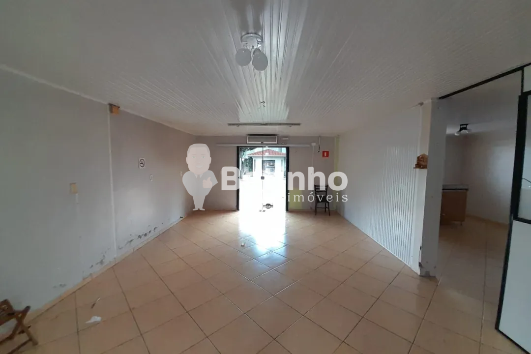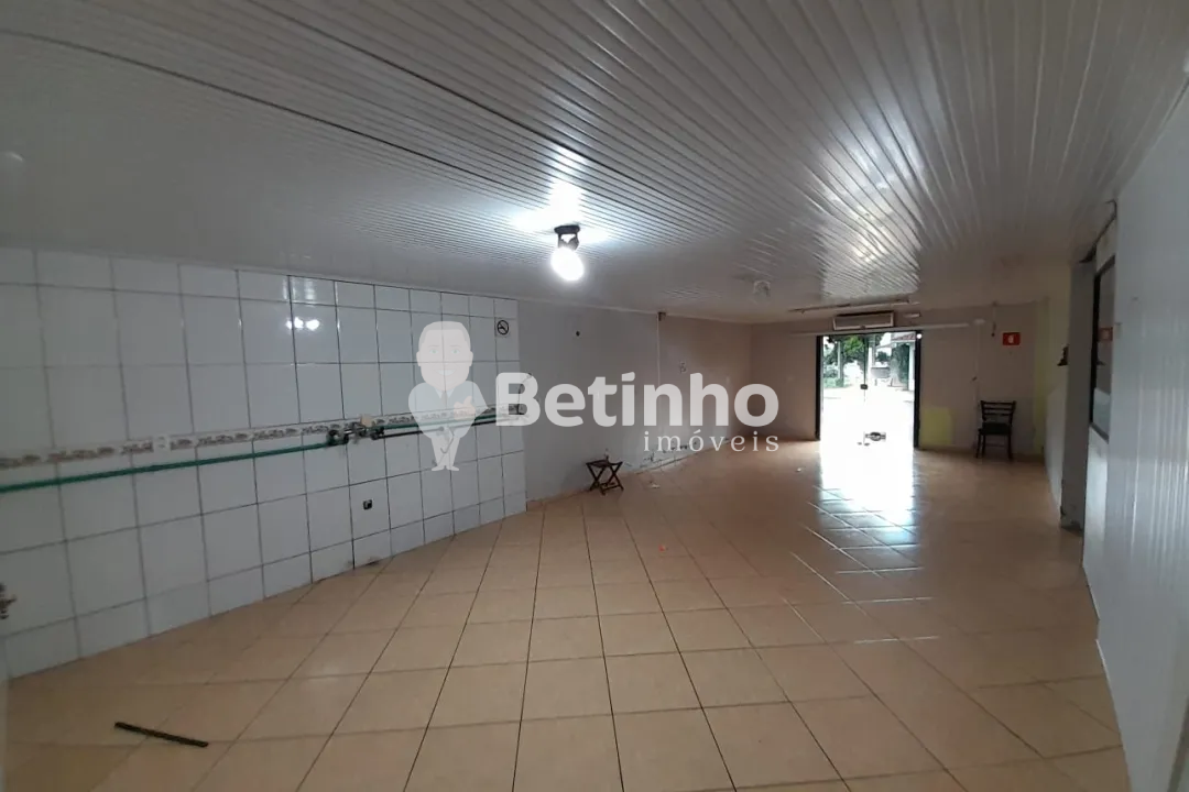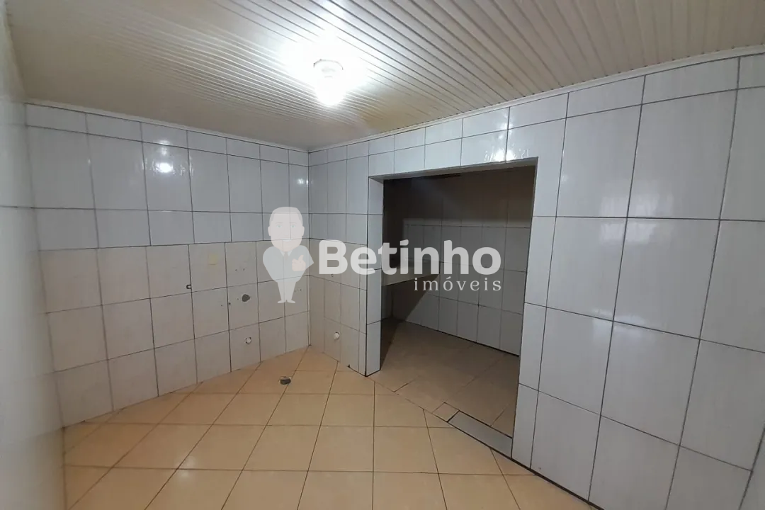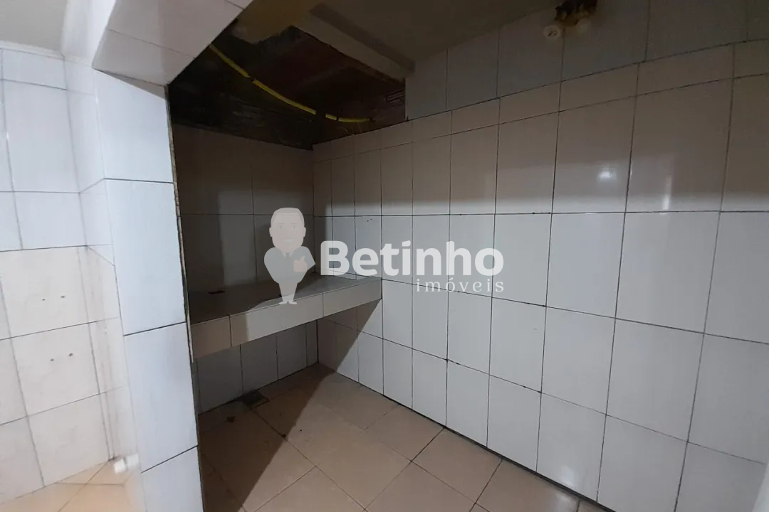 Sala comercial para locação com banheiro, cozinha, e ampla área de trabalho.